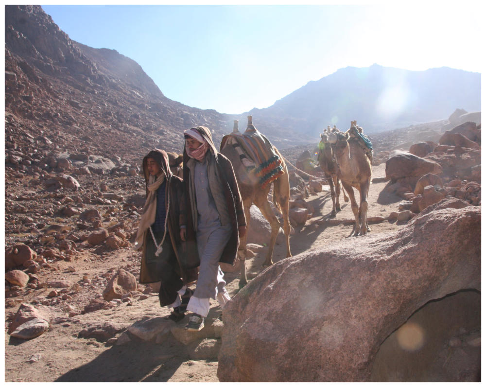 ist, hängen sich zwei Beduinen mit ihren Kamelen an unsere Fersen.